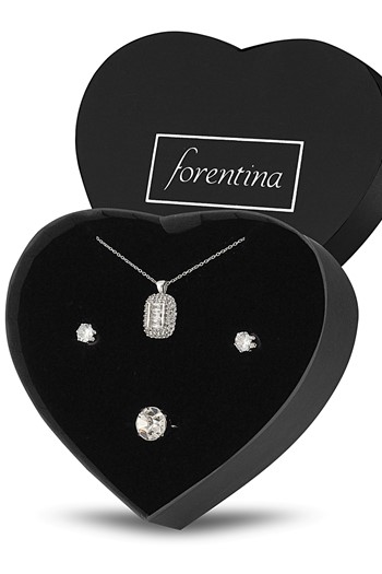 Forentina Gümüş Kaplama Kolye Küpe Yüzük Takı Seti PS2394