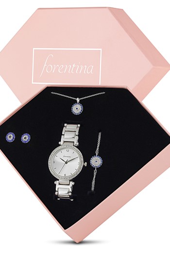 Forentina Nazar Boncuklu Kolye Küpe Bileklik Saat Hediye Set PS2421