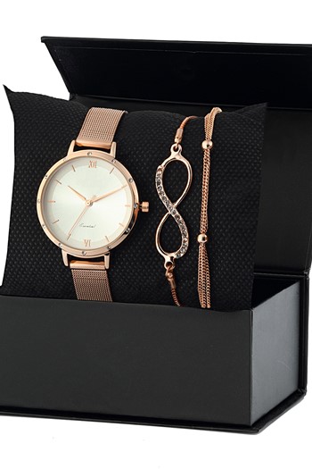Forentina Rose Hasır Kol Saati Sonsuzluk Bileklikli Kombin Set PS2424