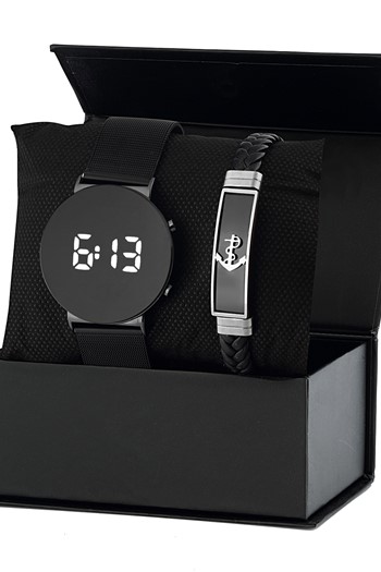 Forenina Siyah Erkek Led Kol Saati Bileklik Kombin Set PS2430