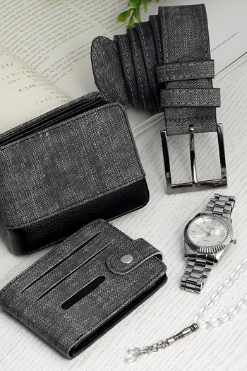 Forentina Erkek Gri Kemer Cüzdan Kartvizit Tesbih Saat Hediye Set PS2432