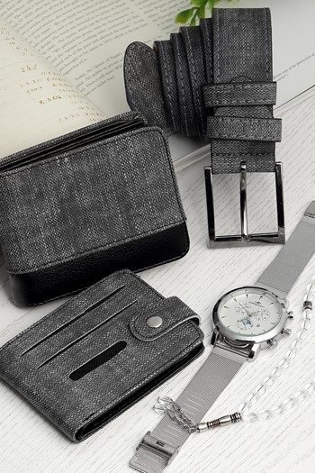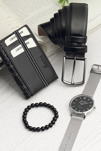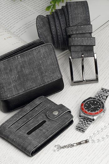 Forentina Erkek Gri Kemer Cüzdan Kartvizit Tesbih Saat Hediye Set PS2431