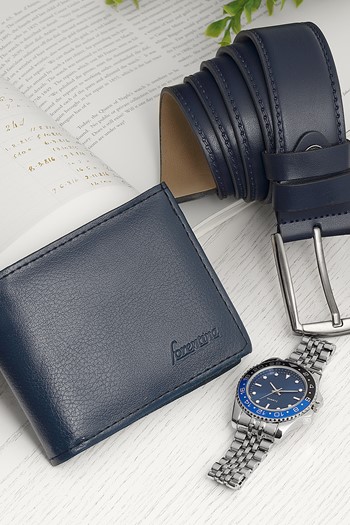 Forentina Lacivert Kemer Cüzdan Saat Hediye Set PS2439
