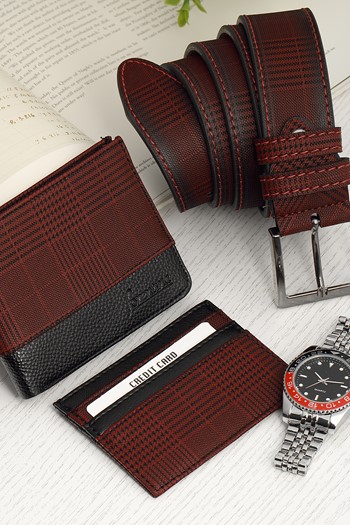 Forentina Bordo Kemer Cüzdan Kartvizit Saat Hediye Set PS2440