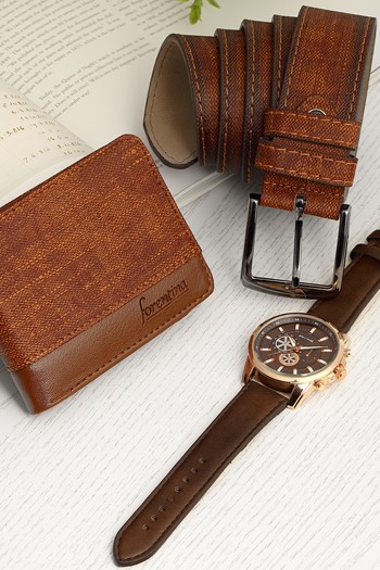 Forentina Kahverengi Kemer Cüzdan Saat Hediye Seti PS2441