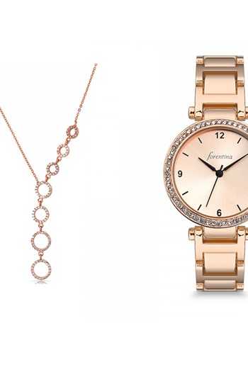 Forentina Bayan Rose Metal Kol Saati - Yuvarlak Kolye Kombin Set PS2453