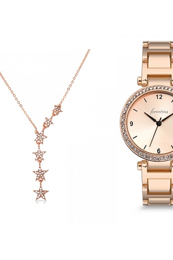 Forentina Bayan Rose Metal Kol Saati - Yıldız Kolye Kombin Set PS2455