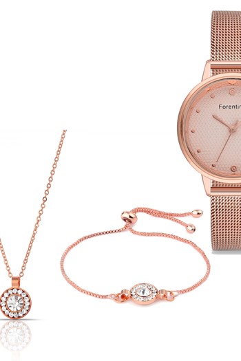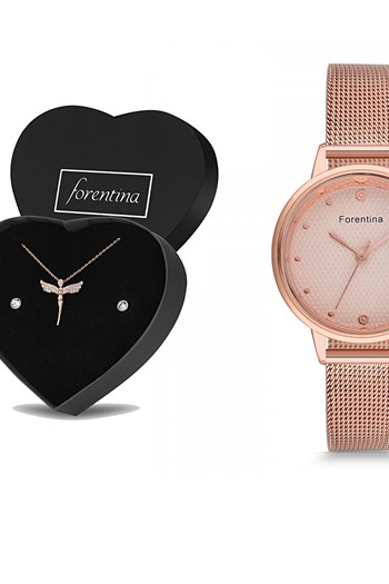 Forentina Bayan Rose Metal Kol Saati - Yonca Takı Seti PS2454