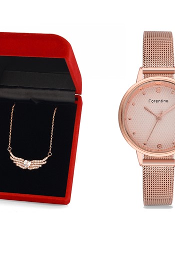 Forentina Bayan Rose Hasır Kol Saati - Melek Kanadı Kolye Kombin Set PS2461