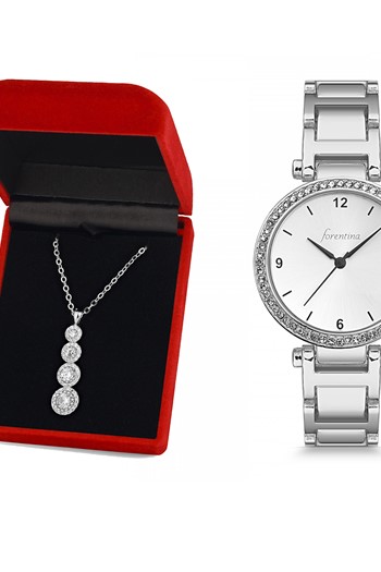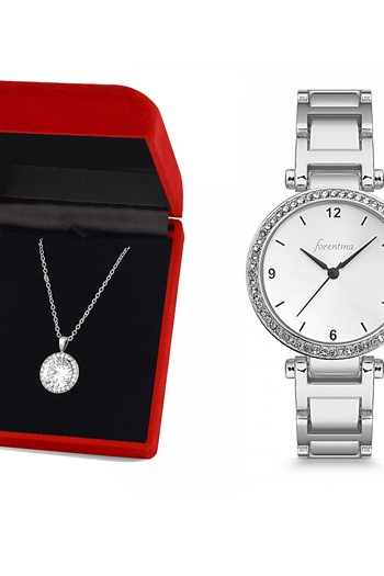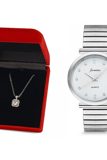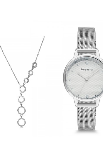 Forentina Bayan Beyaz Metal Kol Saati Tria Kolye Kombin Set PS2462