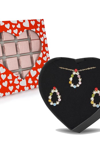Forentina Altın Kaplama Renkli Taşlı Takı Seti- Çikolata Hediye Set PS2481