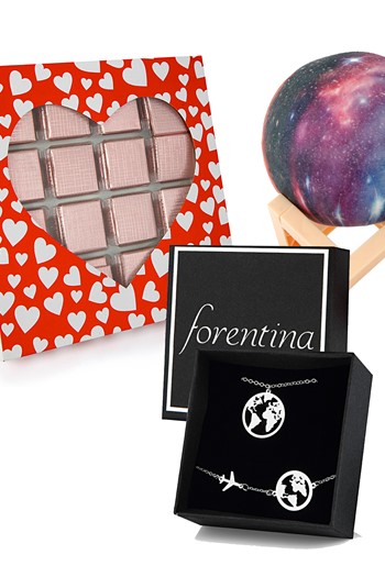 Forentina Gümüş Kaplama Dünya Kolye Bileklik -Dünya Led Lamba - Çikolata Hediye Set PS2478