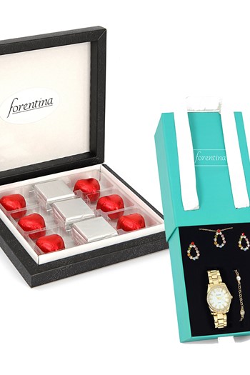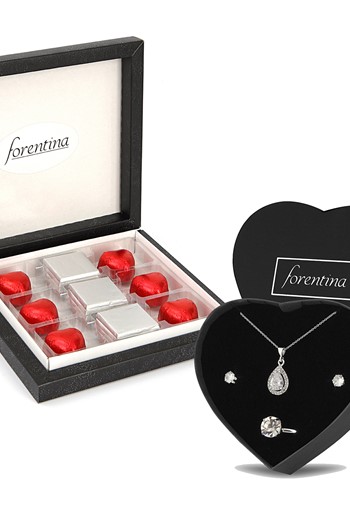 Forentina Gümüş Kaplama Kolye Küpe Yüzük - Çikolata Hediye Set PS2480