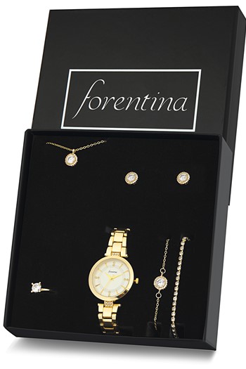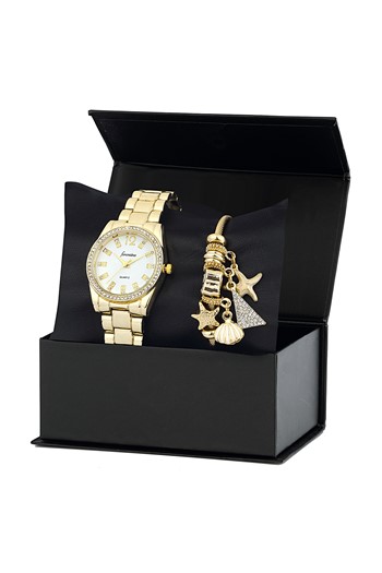 Forentina Kadın Sarı Metal Kol Saati Bileklik Kombin Set PS2800