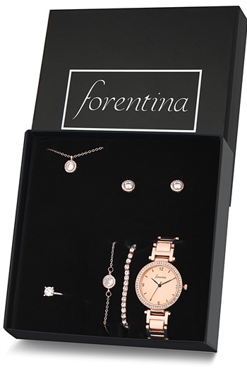 Forentina Rose Renk Tektaş Kolye Küpe Bileklik Saat Hediye Set PS2796