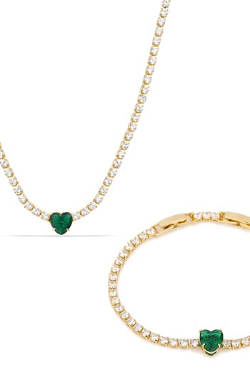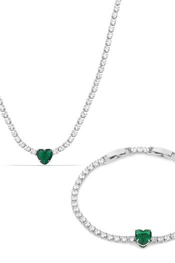 Forentina Kadın Zirkon Kalp Kesim Taşlı Çelik Kolye Bileklik Takı Seti PS2798