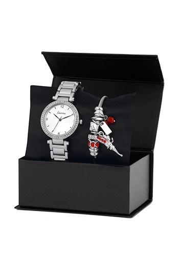 Forentina Kadın Metal Gri Metal Kol Saati Melek Bileklik Kombin Set PS2806