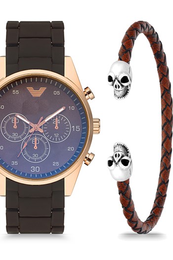 Forentina Erkek Kahverengi Kol Saati Deri Bileklik Kombin Set PS2816