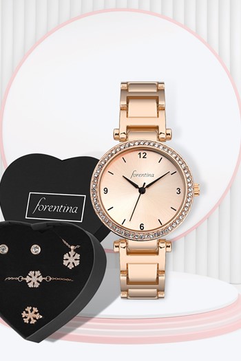 Forentina Kadın Rose Metal Kol Saati - Kar Tanesi Takı Seti PS2845