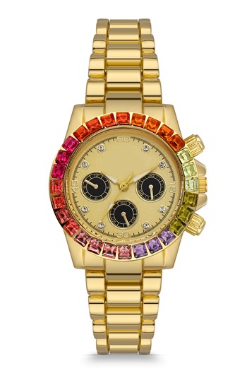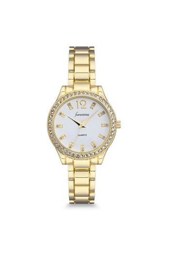 Forentina Kadın Sarı Metal Taşlı Kol Saati PS2858