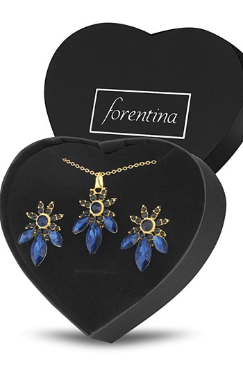Forentina Altın Kaplama Lacivert Taşlı Kolye Küpe Takı Seti PS3099