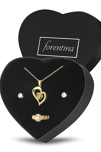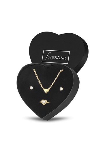 Forentina Altın Kaplama Kalpli Kolye Küpe Yüzük Takı Seti PS3101