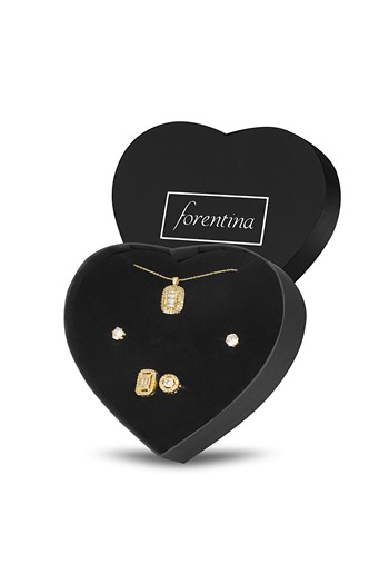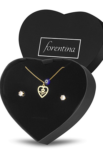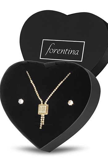 Forentina Altın Kaplama Kalpli Kolye Küpe Takı Seti PS3109