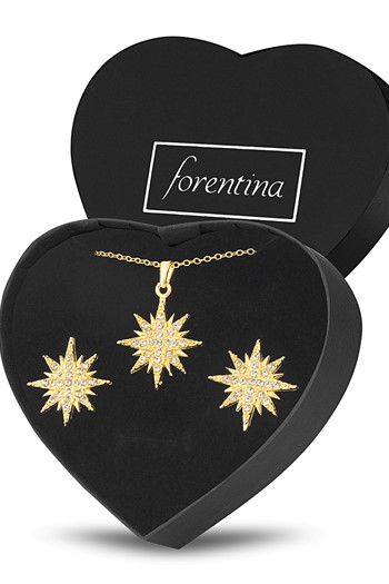 Forentina Altın Kaplama Kutup Yıldızı Kolye Küpe Takı Seti PS3104