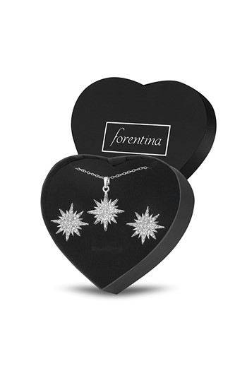 Forentina Gümüş Kaplama Kutup Yıldızı Kolye Küpe Takı Seti PS3105