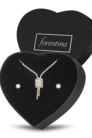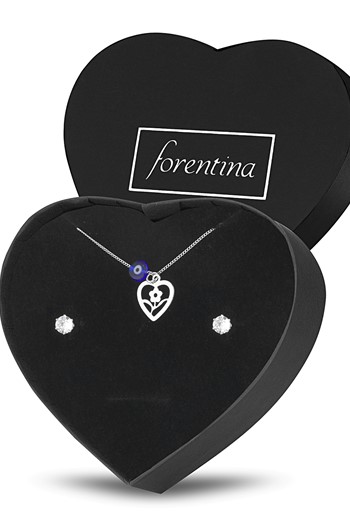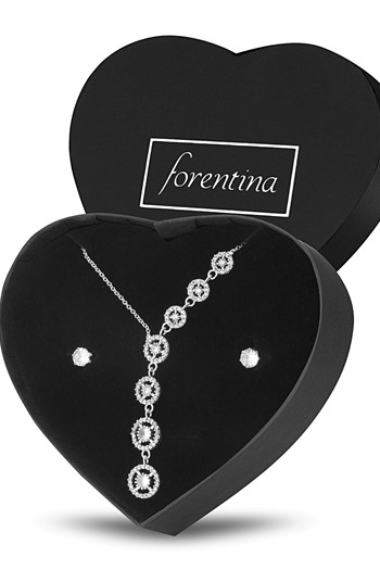 Forentina Gümüş Kaplama Kalpli Kolye Küpe Takı Seti PS3108