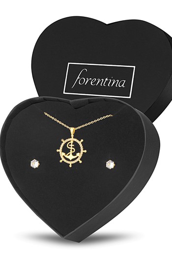 Forentina Altın Kaplama Çıpa Kolye Küpe Takı Seti PS3112