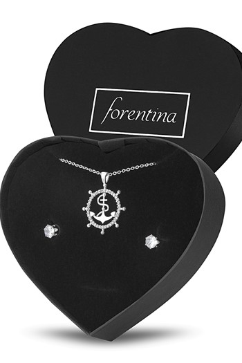 Forentina Gümüş Kaplama Çıpa Kolye Küpe Takı Seti PS3113