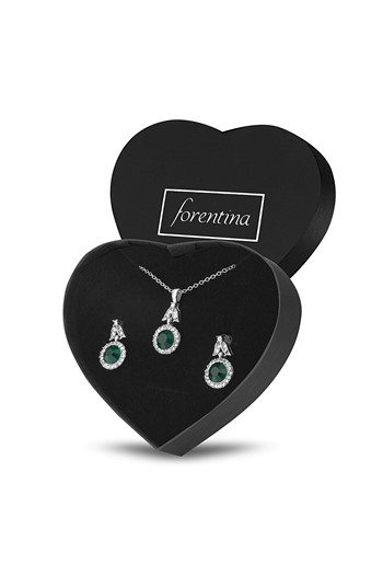 Forentina Gümüş Kaplama Yeşil Taşlı Kolye Küpe Takı Seti PS3115