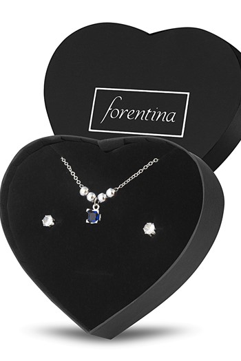 Forentina Gümüş Kaplama Lacivert Taşlı Kolye Küpe Takı Seti PS3119