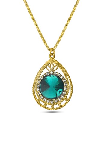 Forentina Altın Kaplama Yeşil Taşlı Madalyon Kolye PS3127