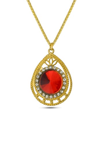 Forentina Altın Kaplama Kırmızı Taşlı Madalyon Kolye PS3128