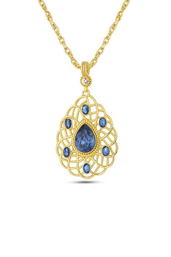 Forentina Altın Kaplama Lacivert Taşlı Madalyon Kolye PS3129