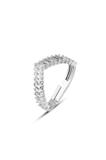 Forentina Gümüş Kaplama Baget Taşlı Kadın Ayarlanabilir Yüzük PS3133