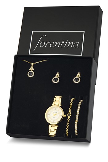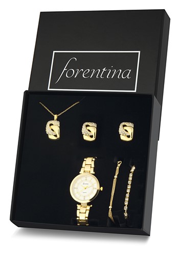 Forentina Altın Kaplama Kolye Küpe Bileklik Saat Hediye Set PS3139