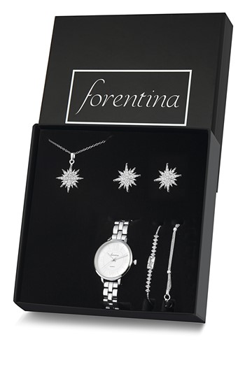Forentina Gümüş Kaplama Kutup Yıldızı Kolye Küpe Bileklik Saat Hediye Set PS3140