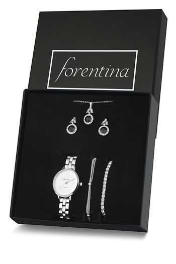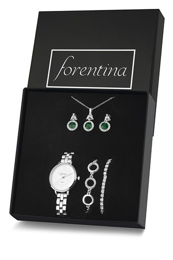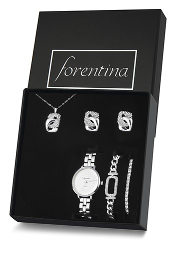 Forentina Gümüş Kaplama Kolye Küpe Bileklik Saat Hediye Set PS3141