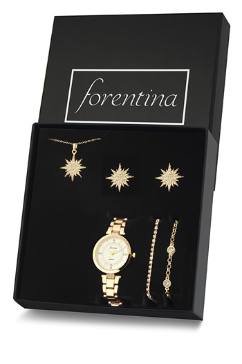 Forentina Altın Kaplama Kutup Yıldızı Kolye Küpe Bileklik Saat Hediye Set PS3142