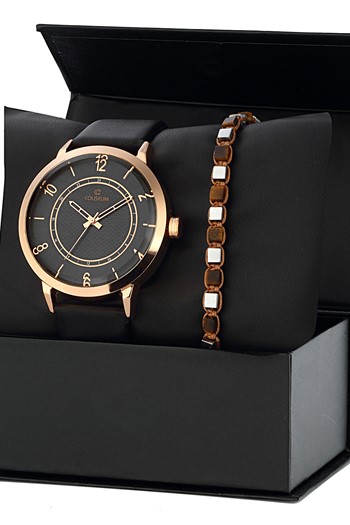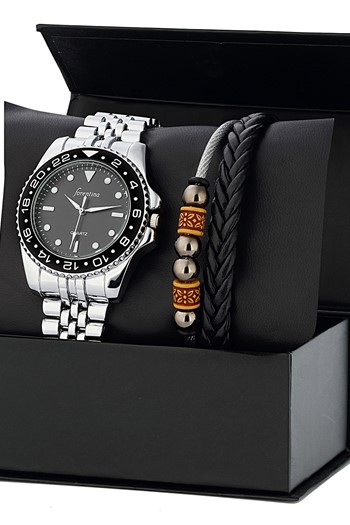 Forentina Erkek Siyah Kol Saati Bileklik Kombin Set PS3150