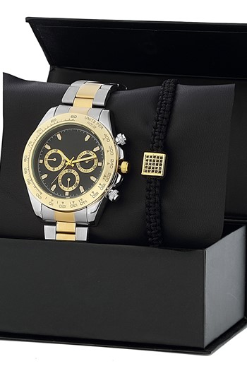 Forentina Erkek Hasır Kol Saati Bileklik Kombin Set PS3149