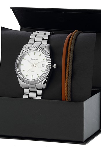 Forentina Erkek Gri Kol Saati Bileklik Kombin Set PS3151