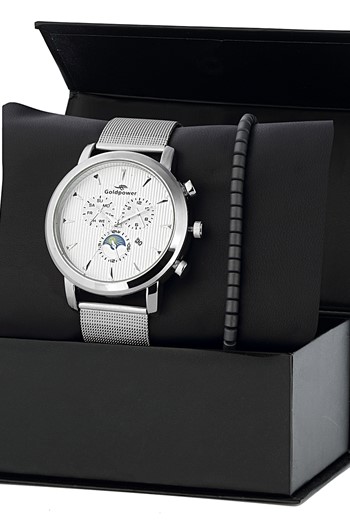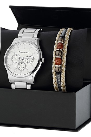 Forentina Erkek Gri Kol Saati Bileklik Kombin Set PS3151
