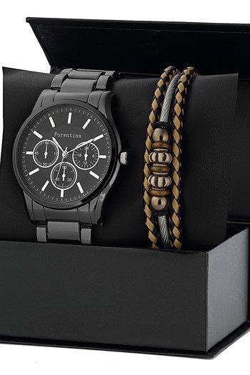 Forentina Erkek Siyah Kol Saati Bileklik Kombin Set PS3150