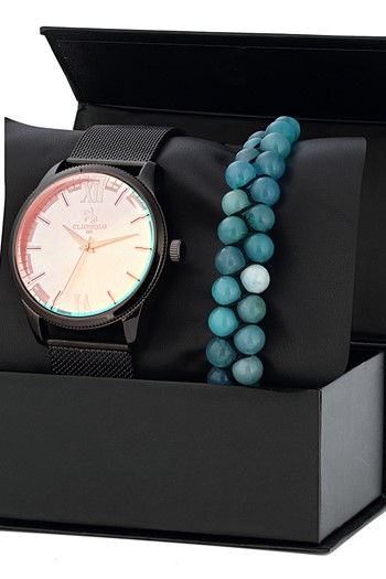 Forentina Erkek Siyah Metal Saat Bileklik Kombin Set PS3157