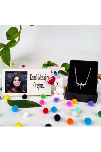 Kişiye Özel İsimli ve Fotoğraflı Çerçeve & Doğum Günün Kutlu Olsun Ayıcığı & Yusufçuk Kolye Arkadaşa