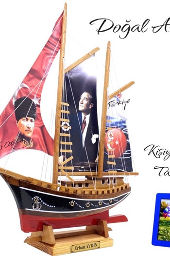 Kişiye Özel İsimli ve Fotoğraflı Gemi Maketi - Ahşap El Yapımı - Atatürk Temalı